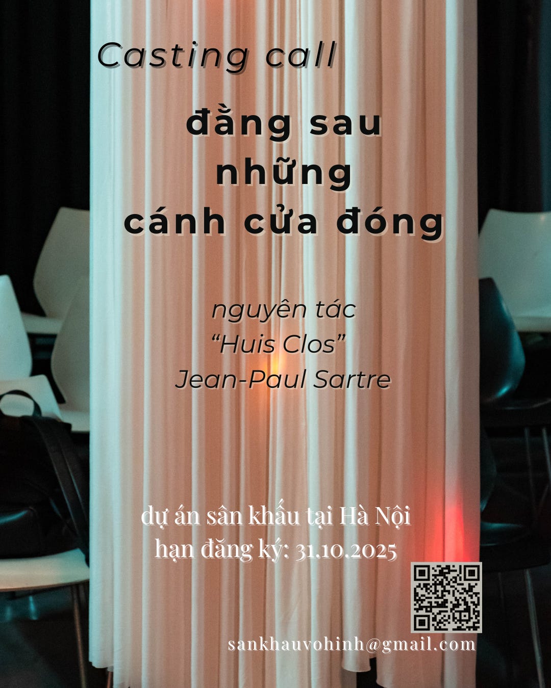 Sân khấu Vô Hình đang tìm kiếm 3 gương mặt diễn viên để tham gia vào dự án sắp tới. Đây là cơ hội dành cho những ai yêu thích nghệ thuật biểu diễn và mong muốn thử thách bản thân trên sân khấu. Dự án chào đón cả những bạn mới lẫn những diễn viên đã có kinh nghiệm, miễn là có sự cam kết và nhiệt huyết với dự án.