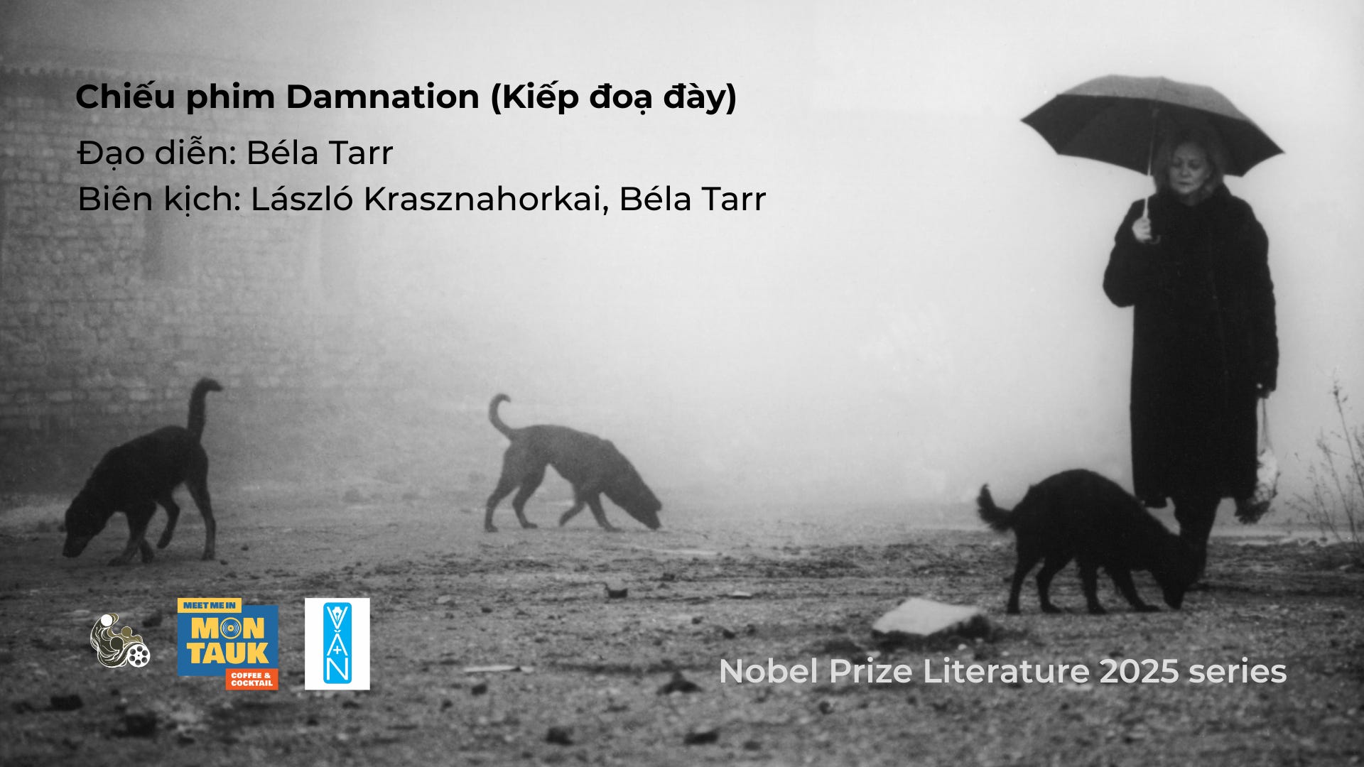 Nhân dịp nhà văn / biên kịch László Krasznahorkai nhận giải thưởng Nobel văn chương 2025, thân mời những người yêu văn chương, yêu điện ảnh cùng tham gia buổi chiếu Damnation do Xí Nghiệp Điện Ảnh Thăng Long và Văn Plus đồng tổ chức, Montauk tài trợ địa điểm.